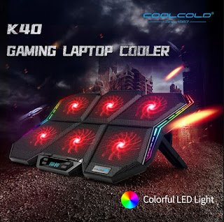 1.6 large fans provide super heat dissipation for the laptop, Freely adjust the wind speed by the knob, 360° RGB lighting surround;